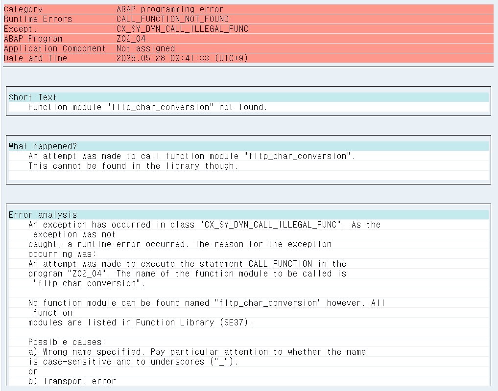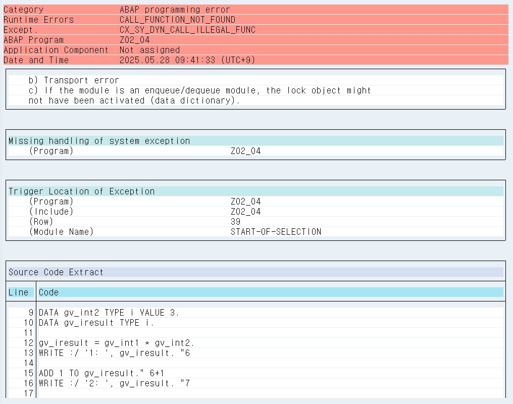 ABAP CX_SY_DYN_CALL_ILLEGAL_FUNC - 부동소수점 계산과 동적 프로그래밍의 대소문자 구문 오류 해결 (0) | 2025.05.28 |
